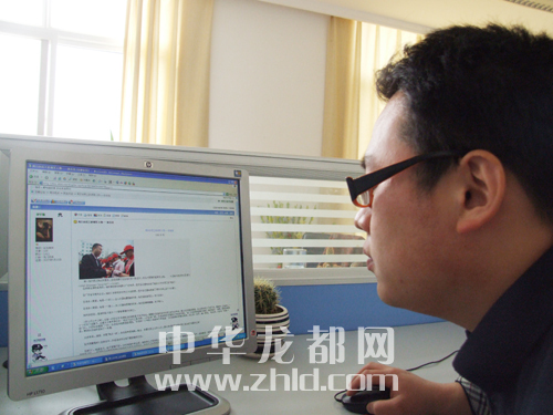 | 4月6日上午,一位網(wǎng)友在中華龍都網(wǎng)社區(qū)瀏覽帖子,了解孫自連事跡。 ?。ㄆ萦?攝) | |
