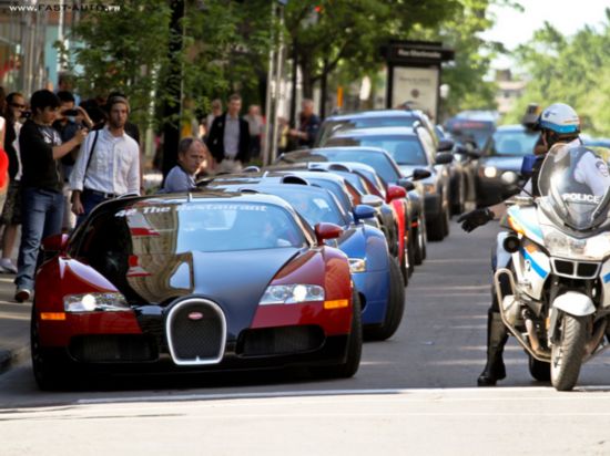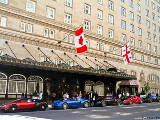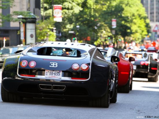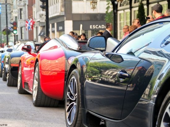 ??? 在上周末剛剛結束的F1蒙特利爾站上,劉易斯哈密爾頓如愿的把冠軍獎杯抱回了家。然而在F1的賽場外還有另一場盛會,在蒙特利爾的街頭聚集了5輛布加迪威航,預估參加這次聚會的布加迪總價值加起來近1.4億元人民幣。