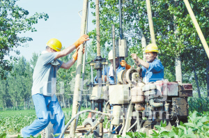 ????本報(bào)訊 (記者 張猛 文/圖) 8月3日下午,記者在西華縣田口鄉(xiāng)看到,一座座鉆機(jī)綿延數(shù)公里,工人們正頭頂烈日進(jìn)行開(kāi)工建設(shè)前的鉆探勘測(cè)工作(如圖),標(biāo)志著鄭合高鐵周口西華段建設(shè)已進(jìn)入實(shí)質(zhì)性階段。