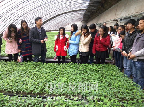 ????近年來,扶溝蔬菜研究院通過不懈努力,建設(shè)了各種設(shè)施蔬菜的棚型模式,成為了新品種示范展示基地、大學(xué)生實(shí)習(xí)基地。圖為河南農(nóng)大園藝學(xué)院的60名師生到該縣觀摩學(xué)習(xí)。