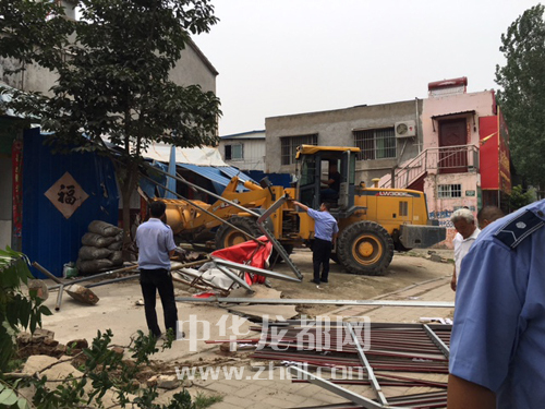 ????正當(dāng)拆除違章建筑物順利進行之時,一家飯店老板順著梯子爬上了二層的違章棚棚頂,與城管隊員“對峙”,令拆除工作一度陷入僵局。通過對其及家人細致地宣傳與講解,最終,店主既心疼又懊悔地看著自家的違章棚變成一堆廢銅爛鐵。