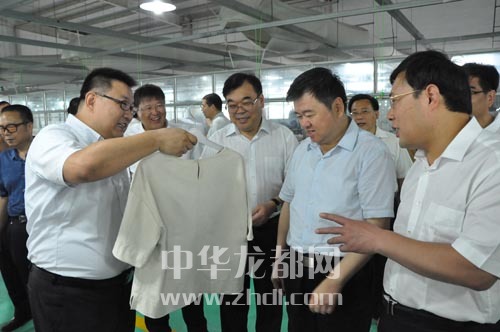 ????集中開工活動前,徐光、劉繼標(biāo)等市領(lǐng)導(dǎo)在周口阿爾本制衣有限公司調(diào)研。 記者 王亞輝 攝