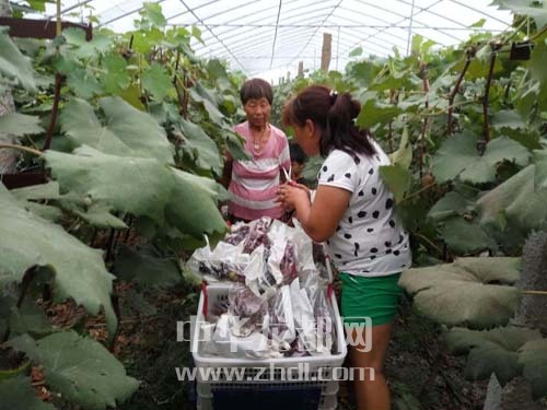 ????在農(nóng)場的葡萄大棚里,一串串葡萄被套上了塑料袋,形成了五顏六色的奇特景觀,社員正忙著采摘裝箱(如圖)。農(nóng)場技術(shù)人員介紹:“給葡萄套袋,可以明顯改善果實品質(zhì),保護果實不受病蟲害侵襲,減少農(nóng)藥殘留,防鳥啄食,改善果實外觀,提高果品檔次,是當(dāng)前生產(chǎn)高品質(zhì)、無公害葡萄的有效措施?!?/p>