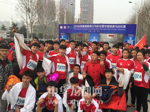 ????本報訊 千年周口情,萬眾馬拉松。12月18日上午,由中國田徑協(xié)會、中華慈善總會、河南省慈善總會、周口市人民政府主辦,周口市體育局、周口廣播電視臺、周口市慈善總會、河南路跑文化傳媒有限公司承辦的2016河南誠森周口馬拉松暨中國慈善馬拉松賽在我市中心城區(qū)激情開賽,來自世界各地的5300余名選手報名參加了比賽。