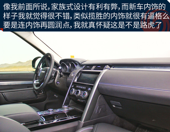 內(nèi)飾趨向家族化設(shè)計(jì),與攬勝的內(nèi)飾差不多。特別是在內(nèi)飾的做工和用料依舊保持了奢華的質(zhì)感,只是多了些簡約的味道。高級的材料隨處可見,讓我經(jīng)?;秀蔽沂遣皇情_錯(cuò)了車,這樣的后果很明顯,讓我對它感覺會越來越溫柔,要是開著它去與風(fēng)沙、泥土、亂石或大漠相約,我怎么能舍得?