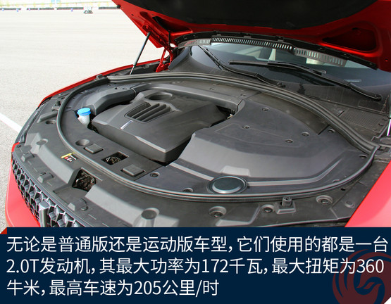 普通版和運(yùn)動(dòng)版車型只提供一套動(dòng)力系統(tǒng),發(fā)動(dòng)機(jī)是一臺(tái)2.0T直噴發(fā)動(dòng)機(jī),技術(shù)上采用了雙流道渦輪增壓以及缸內(nèi)直噴技術(shù);其最大功率為172千瓦,最大扭矩為360牛米,這臺(tái)發(fā)動(dòng)機(jī)跟哈弗H7上的是一樣的。變速箱方面,新車匹配的是長城自主研發(fā)的7擋濕式雙離合變速器。