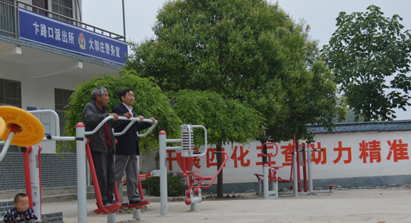 大郭莊村村民在文化廣場鍛煉身體