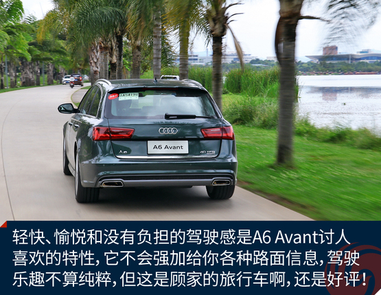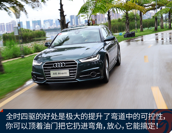 ????????作為原裝進口車,奧迪A6 Avant的底盤懸掛設定不像國產(chǎn)奧迪A6L那種偏向關照后排的VIP,再加上標配運動型懸掛縮減了懸掛行程,A6 Avant旅行車開起來明顯比A6L來的犀利和動感,我并不是說它像RS 6 Avant那樣有種讓人上癮而無法自拔的“毒力”,但作為一臺有著濃郁個人主義色彩又需要兼顧全家使用的車型,奧迪A6 Avant是那種該穩(wěn)就穩(wěn),要快也能快的理想設定。