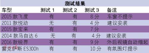 ????當(dāng)然也有意外,測試中的一款2011年的悅動和馬自達6竟然沒有鎖車音響。部分車型如寶來,在車門關(guān)閉異常時,也會發(fā)出正常的鎖車音,但聲音會不如平時悅耳。