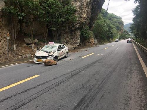 ????14日下午2點(diǎn)多,一名教練帶著學(xué)員在山間練車(chē),突然遇到落石。所幸沒(méi)有人員傷亡,所有人都逃出了車(chē)外。