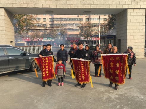 11月20日上午,石夢(mèng)麗的爸爸石戰(zhàn)爭(zhēng)和大哥、嬸子來(lái)到市交警支隊(duì),送來(lái)3面錦旗,向給予他們幫助的市交警支隊(duì)和王凱偉表達(dá)謝意(如圖)。