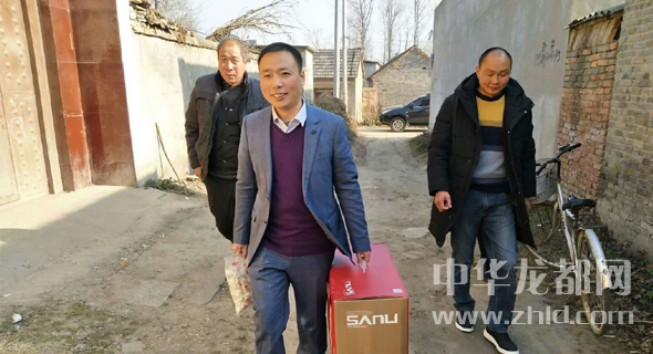 閆永生(中)為貧困戶送水餃