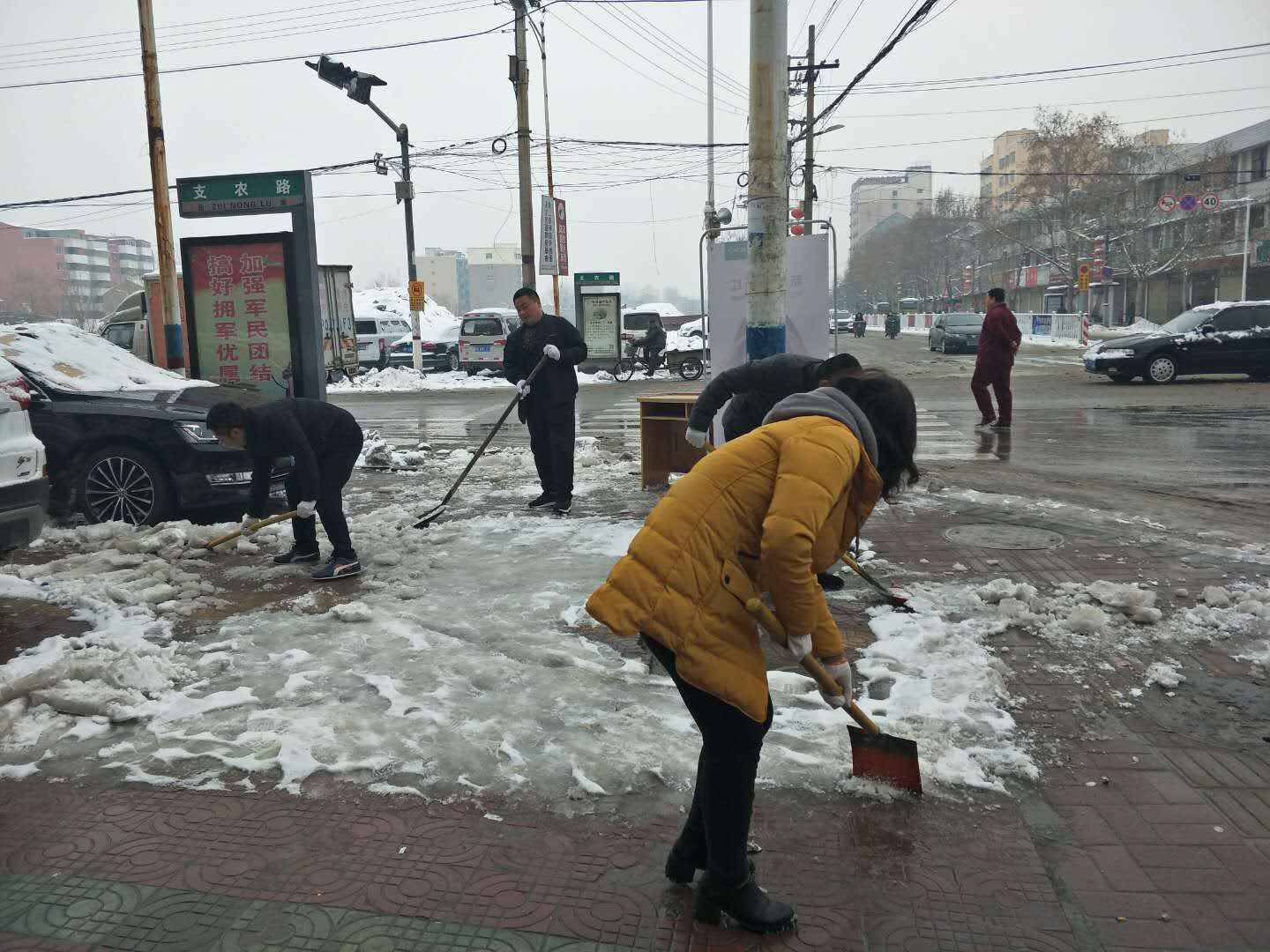 一呼百應(yīng)。該縣縣直各單位、新城、洺南、洺北辦事處,城郊鄉(xiāng)、工業(yè)區(qū)接到通知后,立組織機(jī)關(guān)企事業(yè)單位干部職工上街掃雪、鏟雪,做到本單位出入口、文明城創(chuàng)建責(zé)任區(qū)路面基本無積冰、殘雪。各辦事處發(fā)揮屬地管理作用,重點(diǎn)發(fā)動(dòng)新華路、迎賓大道、世紀(jì)大道、人民路、育新路、文化路、交通路、科技大道等沿街單位及商戶主動(dòng)落實(shí)“門前三包”,清掃人行道積雪。城管部門從1月5日開始一直未停歇,前兩天雖然雪花飄舞,他們冒雪出動(dòng)大型車輛、組織專業(yè)隊(duì)伍,最大程度的保障了主次干道無積雪、通行順暢。今日,縣城管局按照縣委、縣政府的指示精神,正夜以繼日加大城區(qū)主路行車道路面的清掃力度。在清掃的同時(shí),出動(dòng)各種運(yùn)輸車輛,協(xié)助各單位及時(shí)把中心城區(qū)冰雪清運(yùn)、規(guī)范堆放,確保行人和車輛正常安全通行。