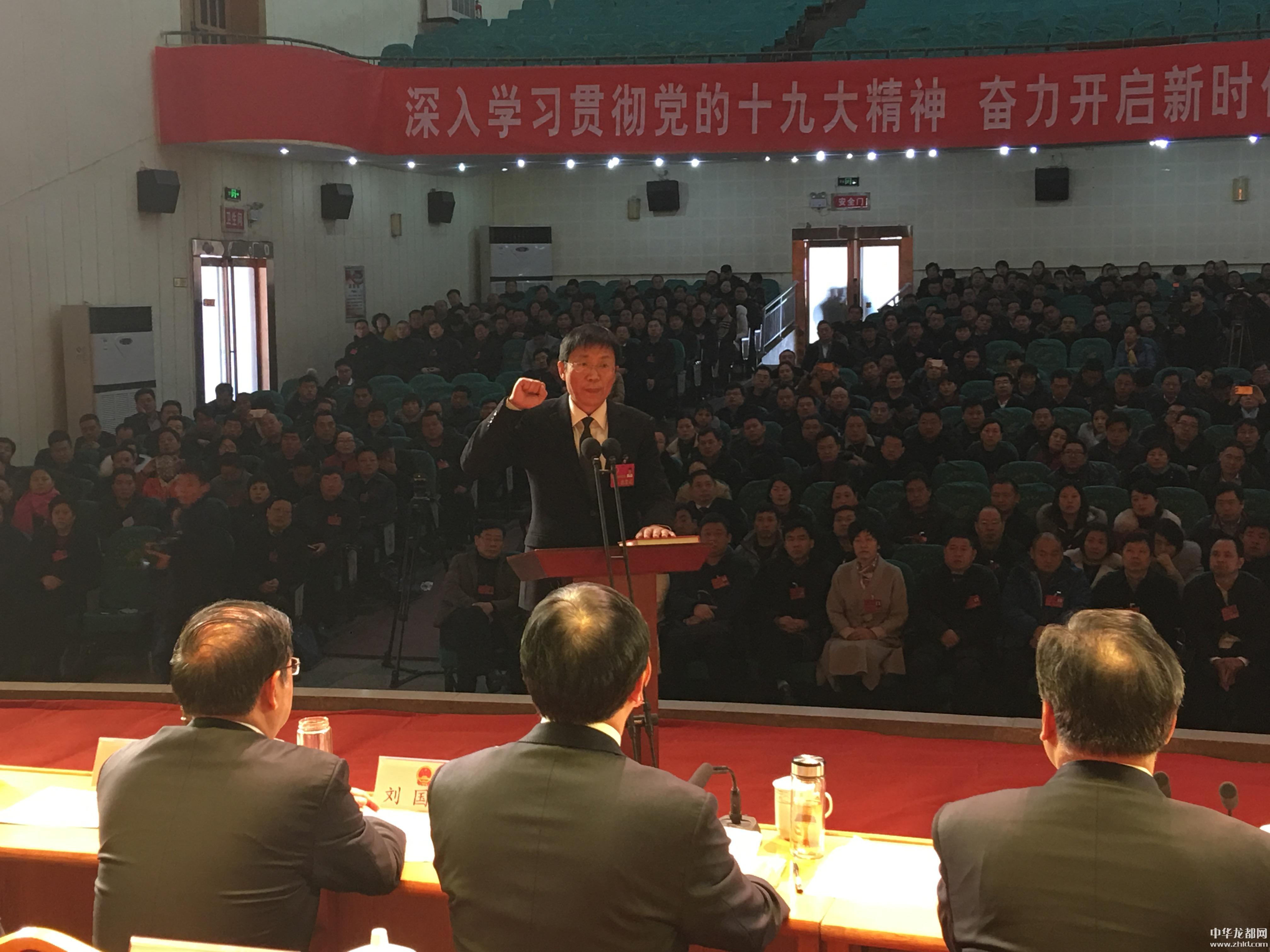 “我宣誓:忠于中華人民共和國憲法,維護憲法權(quán)威,履行法定職責(zé),忠于祖國、忠于人民,恪盡職守、廉潔奉公,接受人民監(jiān)督,為建設(shè)富強、民主、文明、和諧的社會主義國家努力奮斗!”劉孟連左手撫按《憲法》,右手握拳高舉,莊嚴(yán)宣誓。全體代表監(jiān)誓。