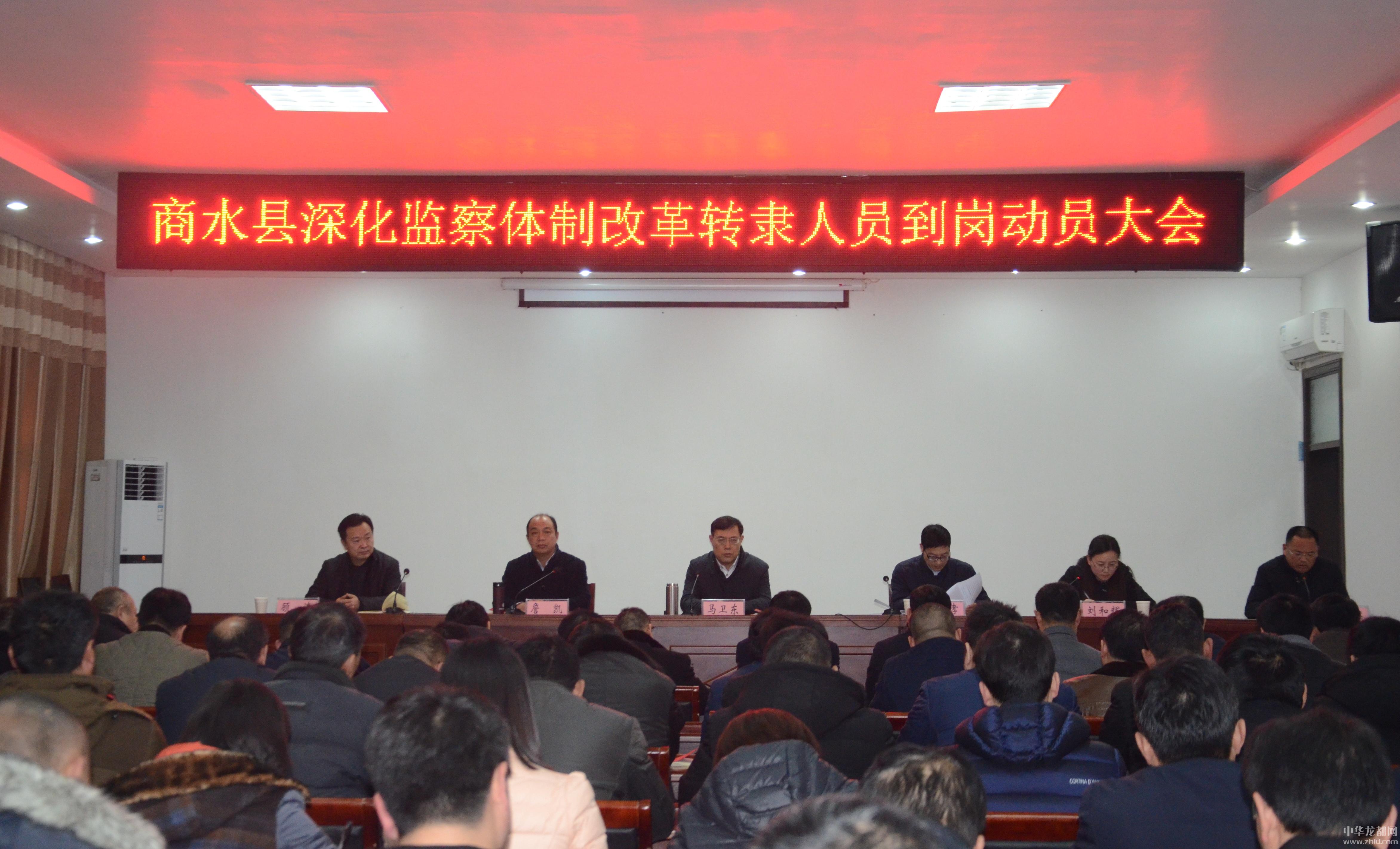 中華龍都訊 (周口報(bào)業(yè)全媒體記者 付永奇 通訊員 李前進(jìn))1月17日下午,商水縣深化監(jiān)察體制改革轉(zhuǎn)隸人員到崗動(dòng)員大會(huì)在縣委五樓會(huì)議室召開(kāi)。市紀(jì)委常委、市監(jiān)委委員朱良孝,縣委書(shū)記馬衛(wèi)東,縣委常委、紀(jì)委書(shū)記詹凱,縣委常委、組織部長(zhǎng)劉和輝,縣檢察院檢察長(zhǎng)顧濤;縣紀(jì)委監(jiān)察局機(jī)關(guān)、縣委巡察機(jī)構(gòu)全體人員以及縣檢察院全體轉(zhuǎn)隸人員參加了會(huì)議。