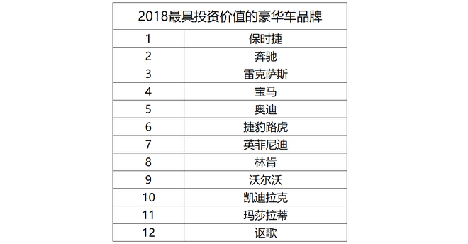 2018年經(jīng)銷商值得投入的品牌推薦保時(shí)捷、奔馳、雷克薩斯;具有增長(zhǎng)潛力的品牌推薦寶馬、奧迪、捷豹路虎;謹(jǐn)慎關(guān)注的品牌有瑪莎拉蒂、謳歌。