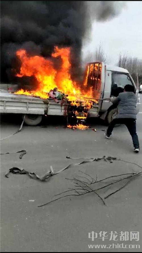中華龍都網(wǎng)訊(周口報業(yè)全媒體記者馬治衛(wèi)通訊員王立平)2月27日中午13:00時,太康縣百米大道一輛滿載家具的車輛在行進途中突然著火,濃煙夾雜火苗很快蔓延整個路面,車上的家具隨火勢迅速燃燒,路人不禁驚呼:“失火了!失火了!”