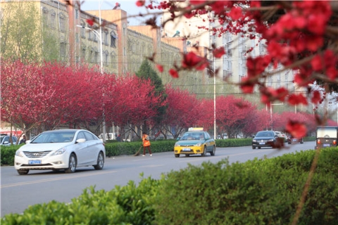 “不必費(fèi)勁周折跑到鄉(xiāng)間土路看桃花,我們這里的桃樹是專門的景觀桃。相比普通桃樹,景觀桃花瓣更多、更嬌艷,而且花期也相對(duì)較長?!睂?duì)桃樹頗有研究的賈海新說,只是建設(shè)大道西段處于周口城區(qū)西北角,靠近郊區(qū),這里盛開的桃花鮮有人知道而已。