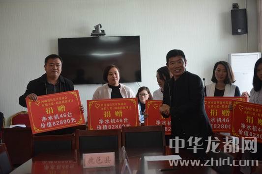 中華龍都網(wǎng)訊(周口報業(yè)全媒體記者 李瑞才 文/圖)4月26日上午,2018年“眾情大愛、精準扶貧”捐贈儀式在鹿邑縣掀開大幕。河南省扶貧開發(fā)協(xié)會、河南省“眾情大愛、精準扶貧”項目組委會主任衛(wèi)建亞出席儀式并現(xiàn)場向鹿邑縣捐贈1000臺價值180萬元的凈水設(shè)備。來自全縣24個鄉(xiāng)鎮(zhèn)(辦事處)的1000名貧困戶家庭很快就可以飲用到放心安全的“扶貧水”了。