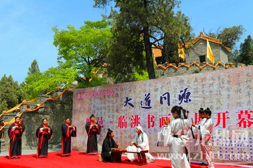 中華龍都網(wǎng)訊(周口報(bào)業(yè)全媒體記者 李瑞才/文 通訊員 陳興有/圖)5月4日上午,“大道同源”——鹿邑·臨洮書畫聯(lián)展活動(dòng)在鹿邑縣明道宮景區(qū)開幕。此次活動(dòng)由甘肅省臨洮縣人民政府和鹿邑縣人民政府共同舉辦,精選兩地137位書畫藝術(shù)家140余幅作品在鹿邑展出。鹿邑縣領(lǐng)導(dǎo)武衛(wèi)東、劉銀、宋克言、王玉超和臨洮縣委常委、宣傳部長(zhǎng)郭志萍等出席開幕式。