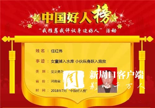 7月30日,中央文明辦全國道德模范與身邊好人現(xiàn)場交流活動在長春舉行,現(xiàn)場發(fā)布了7月“中國好人榜”,太康縣任紅偉光榮入選7月份見義勇為類中國好人榜。目前,太康縣入選中國好人榜人數(shù)已達39人。