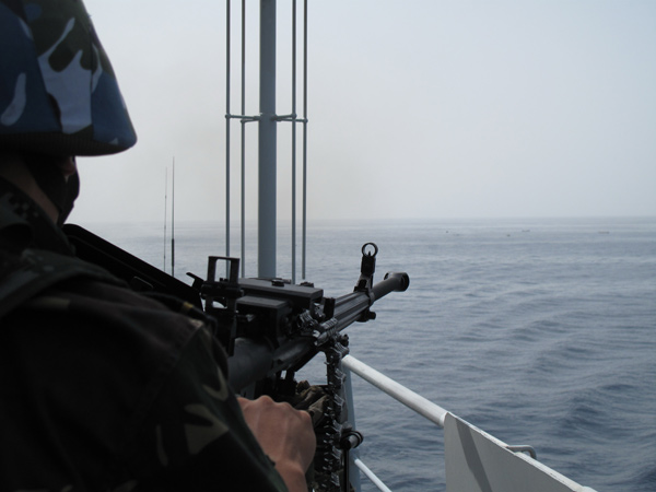 “噠噠噠……”,特戰(zhàn)隊(duì)員扣動(dòng)扳機(jī),重機(jī)槍發(fā)出猛烈的怒吼,呼嘯而出的子彈在海盜快艇前筑起一道難以逾越的火線(xiàn),海盜見(jiàn)狀,頓時(shí)慌了手腳,急忙調(diào)轉(zhuǎn)船頭,倉(cāng)皇逃竄。