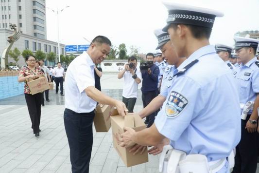 夏末秋初,鹿邑縣高溫天氣持續(xù)不斷,廣大民警忠誠履職、堅(jiān)守一線,戰(zhàn)高溫、斗酷暑,全力維護(hù)人民群眾生命財(cái)產(chǎn)安全。8月16日下午,鹿邑縣四大班子領(lǐng)導(dǎo)付吉廣、張麗娟、王新民、劉銀、何新敏、宋克言等領(lǐng)導(dǎo)深入執(zhí)勤一線看望慰問了縣公安局交警大隊(duì)、巡特警大隊(duì)執(zhí)勤民警,并送去慰問品。