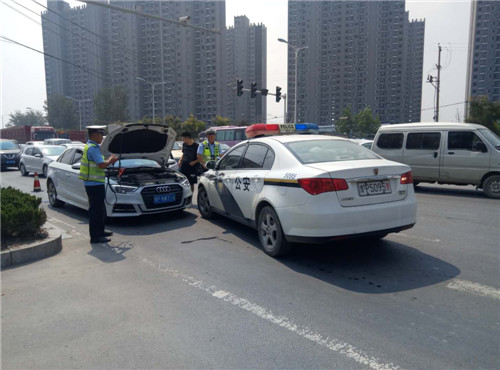 8月26日中午11點(diǎn),周口港區(qū)公安分局民警發(fā)現(xiàn),一輛私家車行經(jīng)周項(xiàng)路周口港區(qū)路段時(shí),發(fā)生故障停在快車道,影響道路暢通。港區(qū)交警部門負(fù)責(zé)人姜亞偉上前了解情況,得知汽車電瓶出現(xiàn)故障,無法正常發(fā)動。于是姜亞偉將警車開到私家車旁,用汽車電瓶連接線將警車電池與私家車鏈接,幫助車主啟動汽車,迅速恢復(fù)道路交通秩序。