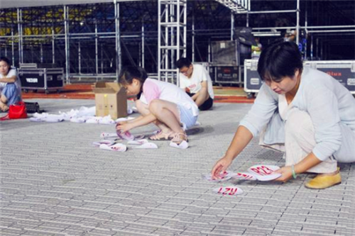 在場地的一側(cè),幾名工作人員正在全神貫注地整理一大堆號碼貼,“省運會是全省的體育盛會,能有機會參與這樣的運動會是一種榮幸,我們準(zhǔn)確地說應(yīng)該算是志愿者,因為我們屬于義務(wù)勞動。”其中一名女士說,這是細(xì)活,急不得,號碼非常多,英文中的26個字母,分大小寫,然后還和阿拉伯?dāng)?shù)字進(jìn)行組合,她們的工作就是要把這些號碼捋順,防止出現(xiàn)差錯。記者注意到,場地的四周放置了很多音響,工作人員正在對播音設(shè)備進(jìn)行調(diào)試,雖然還處于調(diào)試階段,但是聽起來已經(jīng)非常震撼。在場地旁邊,部分表演道具也整齊擺放著,看到這些精致的道具,開幕式當(dāng)天的文藝表演精彩程度可見一斑。