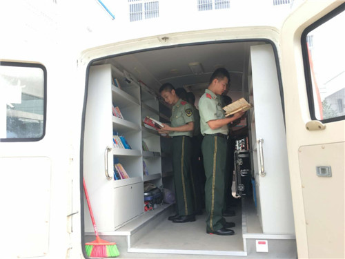 為進(jìn)一步發(fā)揮公共圖書館的知識(shí)傳播職能,提升軍營(yíng)圖書室藏書“新鮮度”,提高部隊(duì)官兵的文化科學(xué)綜合素質(zhì),8月28日,商水縣圖書館利用流動(dòng)圖書車,先后來到商水縣武警中隊(duì)和商水縣消防支隊(duì),將精心挑選的500余冊(cè)圖書送到他們的圖書室。
