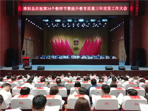 9月3日,在第34個(gè)教師節(jié)來臨之際,淮陽縣慶祝第34個(gè)教師節(jié)暨提升教育質(zhì)量三年攻堅(jiān)工作大會(huì)召開。會(huì)議主要目的是總結(jié)一年來教育工作取得的成績,對(duì)教育戰(zhàn)線涌現(xiàn)出的“優(yōu)秀校長”“師德標(biāo)兵”“優(yōu)秀班主任”“優(yōu)秀教師”進(jìn)行表彰,并對(duì)全縣提升教育質(zhì)量三年攻堅(jiān)工作進(jìn)行全面動(dòng)員部署。