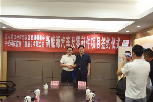 9月5日,周口經(jīng)濟(jì)開發(fā)區(qū)與中銳科技控股(香港)有限公司就新能源汽車及零部件項目建設(shè)成功簽約。開發(fā)區(qū)黨委書記田林、管委會主任王文峰、管委會副主任支利民,中銳科技控股(香港)有限公司董事長張健源、中銳電源公司總經(jīng)理王力和等出席簽約儀式。