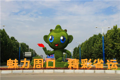 當(dāng)日上午,記者在東新區(qū)周口大道與文昌大道交叉口看到,巨大的運動會吉祥物造型“泥娃”正在招手,向每一位路人致意?!镑攘χ芸冢适∵\”的口號立于泥娃兩側(cè),引人注目。中心路口的轉(zhuǎn)盤花壇內(nèi)已煥然一新,五顏六色的花朵正以嬌艷的姿態(tài),歡迎四海賓朋共聚周口。