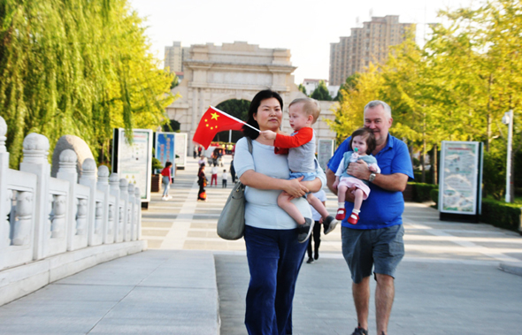 “看著滿眼的國旗紅,心情特別激動,真心為祖國的發(fā)展與強(qiáng)大感到驕傲和自豪?!?0月1日上午,市民王先生帶著家人來到周口公園,感受濃濃的國慶氛圍。