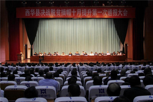 10月14日下午,西華縣召開決戰(zhàn)脫貧摘帽十月提升第一次通報大會??h委書記林鴻嘉,縣長田慶杰,市脫貧攻堅第二督查巡查組長李濤等領(lǐng)導出席會議。