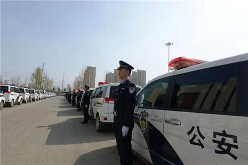 儀式上,縣領(lǐng)導(dǎo)為“百警駐百村”民警代表發(fā)放了第三批巡邏電動(dòng)車、臺(tái)式電腦、平板電腦等 “一村一警”警務(wù)裝備。儀式結(jié)束后,隨著梁建松一聲令下,公安民警統(tǒng)一登車,駛向大街小巷,開展第集中大巡邏。
