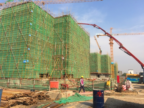 據(jù)該項(xiàng)目副總經(jīng)理王志強(qiáng)介紹,目前該項(xiàng)目南地塊基坑支護(hù)主體已經(jīng)完成,正在進(jìn)行土方的開挖,已出土約20萬(wàn)立方米,完成總出土量的50%,地下室底板抗浮錨桿完成30%。中區(qū)地塊共13棟住宅,其中2棟已施工至主體7層,2棟施工至主體5層,其余9棟正在進(jìn)行正負(fù)零以下主體施工。一字型商業(yè)金街主體施工已經(jīng)封頂 。萬(wàn)達(dá)展示中心已于10月27日正式對(duì)外開放。北地塊商業(yè)區(qū)正在進(jìn)行清表工作,公寓區(qū)清表工作已結(jié)束,樁基已經(jīng)進(jìn)場(chǎng)。