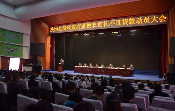 11月21日,扶溝縣召開(kāi)政府置換農(nóng)信社不良貸款清收工作動(dòng)員會(huì)。會(huì)議貫徹落實(shí)省、市有關(guān)部署,動(dòng)員全縣上下統(tǒng)一思想,提高認(rèn)識(shí),細(xì)化措施,夯實(shí)責(zé)任,推動(dòng)政府置換農(nóng)信社不良貸款清收工作深入開(kāi)展、取得實(shí)效。張穎波、張峰、王偉、常青、王霄靈、陳建華、李建設(shè)等縣領(lǐng)導(dǎo)出席會(huì)議??h委副書(shū)記、政法委書(shū)記張峰主持會(huì)議。