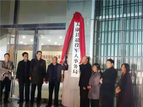11月27日,太康縣退役軍人事務(wù)局掛牌成立。縣委常委、常務(wù)副縣長(zhǎng)張保華,縣委常委、副縣長(zhǎng)韓維俊,縣政協(xié)副主席、縣民政局局長(zhǎng)劉鳳芹出席揭牌儀式??h編辦主任毛雙龍、縣退役軍人事務(wù)局干部職工參加揭牌儀式。
