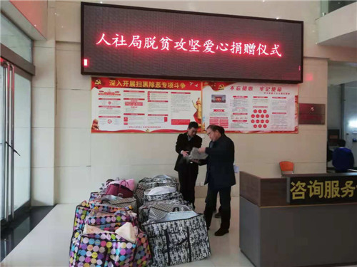 當(dāng)日上午,按照局黨組的決定,人社局黨組成員、副局長(zhǎng)王培敏進(jìn)行了愛(ài)心捐贈(zèng)倡議。下午3時(shí)許,以股室、中心為單位進(jìn)行了現(xiàn)場(chǎng)捐贈(zèng),干部、職工捐贈(zèng)熱情高漲,此次活動(dòng)100多人參與,累計(jì)捐贈(zèng)物品1320件,涉及棉被、棉褥、棉衣、鞋子、靴子等等,捐贈(zèng)的物品清潔完整。這些愛(ài)心物資將根據(jù)貧困群眾的實(shí)際需求,進(jìn)行合理調(diào)劑分發(fā)到各定點(diǎn)幫扶村,力爭(zhēng)捐贈(zèng)物品能夠最大限度合理使用,確保貧困群眾能夠溫暖過(guò)冬。