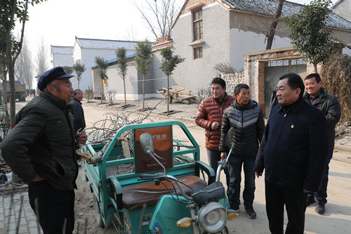 12月14日,是幫扶日。太康縣委書記王國璽來到聯(lián)系點獨塘鄉(xiāng)白龍王村走訪幫扶。王國璽強(qiáng)調(diào),貧困戶退出要嚴(yán)格標(biāo)準(zhǔn),嚴(yán)格程序,杜絕漏評錯退??h委辦公室、縣農(nóng)牧局、住建局等相關(guān)負(fù)責(zé)人陪同。