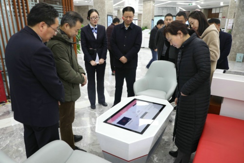 調(diào)研組一行首先來到商水農(nóng)商銀行陽城支行查看“普惠+數(shù)字”銀行建設(shè)情況。陽城支行行長簡要介紹該網(wǎng)點(diǎn)基本情況、服務(wù)理念后,引導(dǎo)調(diào)研組一行依次參觀了普惠授信服務(wù)區(qū)、數(shù)字智能服務(wù)區(qū)、電子銀行體驗(yàn)區(qū)、保管箱服務(wù)區(qū)、貴金屬服務(wù)區(qū)等特色功能區(qū),并詳細(xì)介紹了每個(gè)功能區(qū)的作用和特點(diǎn)。調(diào)研組一行現(xiàn)場體驗(yàn)了智能導(dǎo)覽臺(tái) 、客戶互動(dòng)桌等智能設(shè)備,對(duì)該網(wǎng)點(diǎn)定位準(zhǔn)確、理念前衛(wèi)、設(shè)備先進(jìn)、功能齊全、分區(qū)合理,為客戶提供全方位的金融服務(wù)表示贊賞。