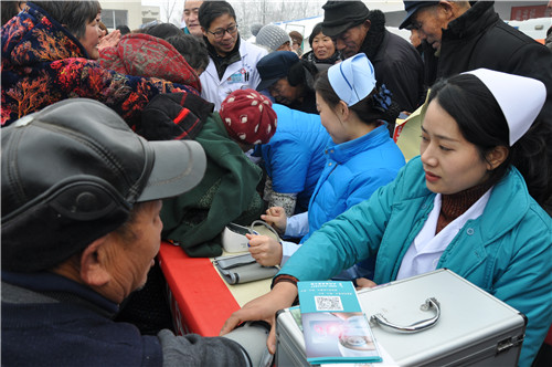 正在排隊量血壓的馬河村村民馬長運(yùn)說:“我今年70多歲,血壓有點(diǎn)高,聽說這 里有義診活動,一大早便來這里等待了?!?/p>