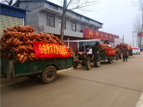 1月14日12時(shí)30分,滿載10萬斤愛心蘿卜的農(nóng)用車從張老家行政村整裝待發(fā)。這些愛心蘿卜將被運(yùn)到周口經(jīng)濟(jì)開發(fā)區(qū)廣場(南廣場)、周口精神病院、長青街中屹縫紉機(jī)商場等地向環(huán)衛(wèi)工人及弱勢群體發(fā)放。記者 黃佳 攝