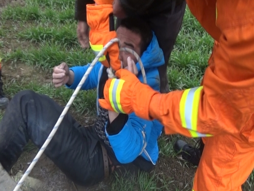 “氣溫很低,而且男子已經(jīng)在井下水里泡了一夜,好在他的意識還比較清醒?!毕乐嘘?duì)長李輝說,經(jīng)過交談,他們采取下繩套的辦法,讓男子自行把手腕伸進(jìn)繩套內(nèi),然后大家齊心協(xié)力把他拉了上來。