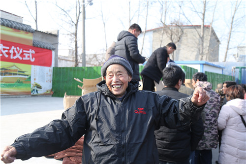 此次捐贈,共捐獻(xiàn)400多套棉襖。穿上嶄新的棉衣,87歲的李如意笑得合不攏嘴,他穿上新棉襖在廣場前轉(zhuǎn)了好幾圈,高興得像個(gè)等待過年的孩子。