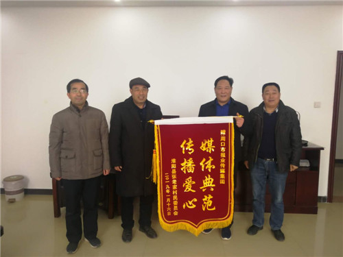“傳播愛(ài)心,媒體典范”“為民解憂(yōu)愁,心系千萬(wàn)家”。1月25日上午,淮陽(yáng)縣劉振屯鄉(xiāng)張老家行政村村支書(shū)張紀(jì)全專(zhuān)程趕到周口,給周口報(bào)業(yè)傳媒集團(tuán)、周口市啄木鳥(niǎo)志愿者服務(wù)工作委員會(huì)送來(lái)兩面錦旗,表達(dá)他們的感激之情(如圖)。