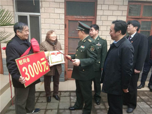 該縣擁軍優(yōu)屬“七送”活動(dòng)具體為:送“功臣之家”牌匾、送立功授獎(jiǎng)喜報(bào)、送慰問金、送慰問品、送春聯(lián)年畫、送軍屬光榮牌、送“周口好兵”宣傳卡等“大禮包”。