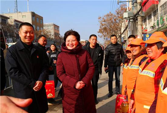 當(dāng)天,張穎波還親切慰問環(huán)衛(wèi)工人、執(zhí)勤交警和水廠工人,囑咐他們?cè)俳釉賲?,做好?jié)日保障工作,代表縣委、縣政府向舍己為人的勞動(dòng)者致以崇高的敬意和節(jié)日的問候,并通過他們向其家人拜年。