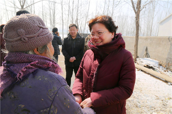 2018年5月11日,張穎波在看望大新鎮(zhèn)陳樓村的困難群眾吳鳳蓮時(shí),曾對(duì)她說過一句話,“等你新房蓋好,我再來看你?!保罚稓q的吳鳳蓮把這句話牢牢地記在了心里。一見張穎波的面,拉著手留著淚連聲說:“俺家房早就蓋好了,就一直盼著恁來。我知道恁忙,可就想讓恁看看俺的房……”老人和一位患病的兒子一起生活,去年5月份張穎波來時(shí),她家正因“危房清零”活動(dòng)而扒掉舊房蓋新房。張穎波當(dāng)時(shí)還特意滿足了老人的一個(gè)愿望,安排村干部為她家房?jī)?nèi)專門壘個(gè)隔斷?!拔遥罚岸嗔?,從來沒住過這么好的房、從來沒過過這么好的日子!”新建的三間磚瓦房、一間配套齊全的廚房和壘好的院墻讓老人感慨不已,發(fā)自肺腑地說著黨和政府的好?!袄先思?,我今天就是想看看房子改造的怎樣,也給你拜個(gè)早年。”張穎波拉著吳鳳蓮老人的手說:“房子蓋好了,也算了了你的一個(gè)心愿,有黨和政府的幫助,日子會(huì)越來越好。你要照顧好自己和孩子,有啥困難就找村里干部。”